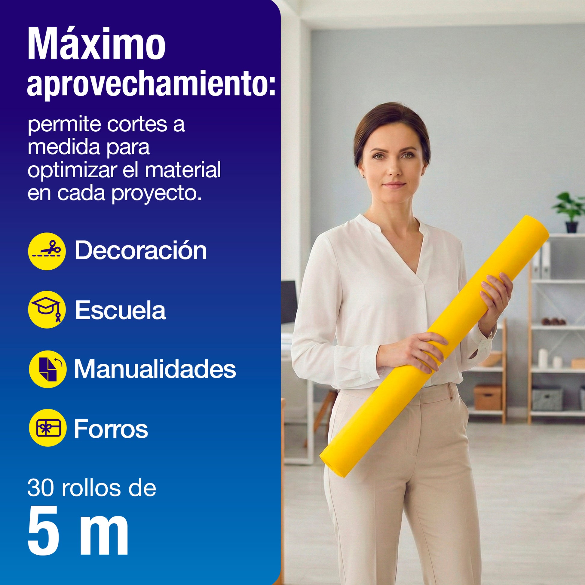 FORMATO EN ROLLO CONTINUO | Papel América en rollo de 70 cm de ancho por 5 metros que permite cortes a la medida y un mejor aprovechamiento del material en cada proyecto.