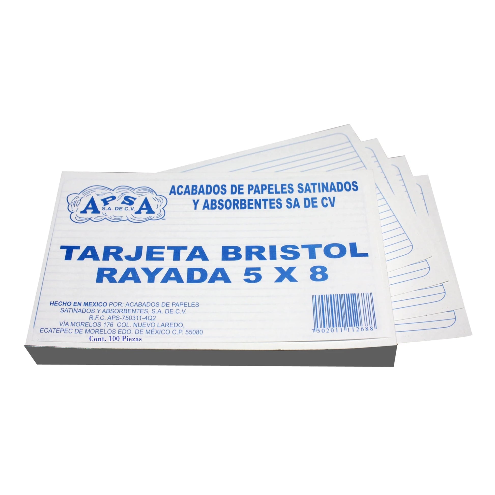 Caja con 30 paquetes de 100 tarjetas de 5'' x 8''.